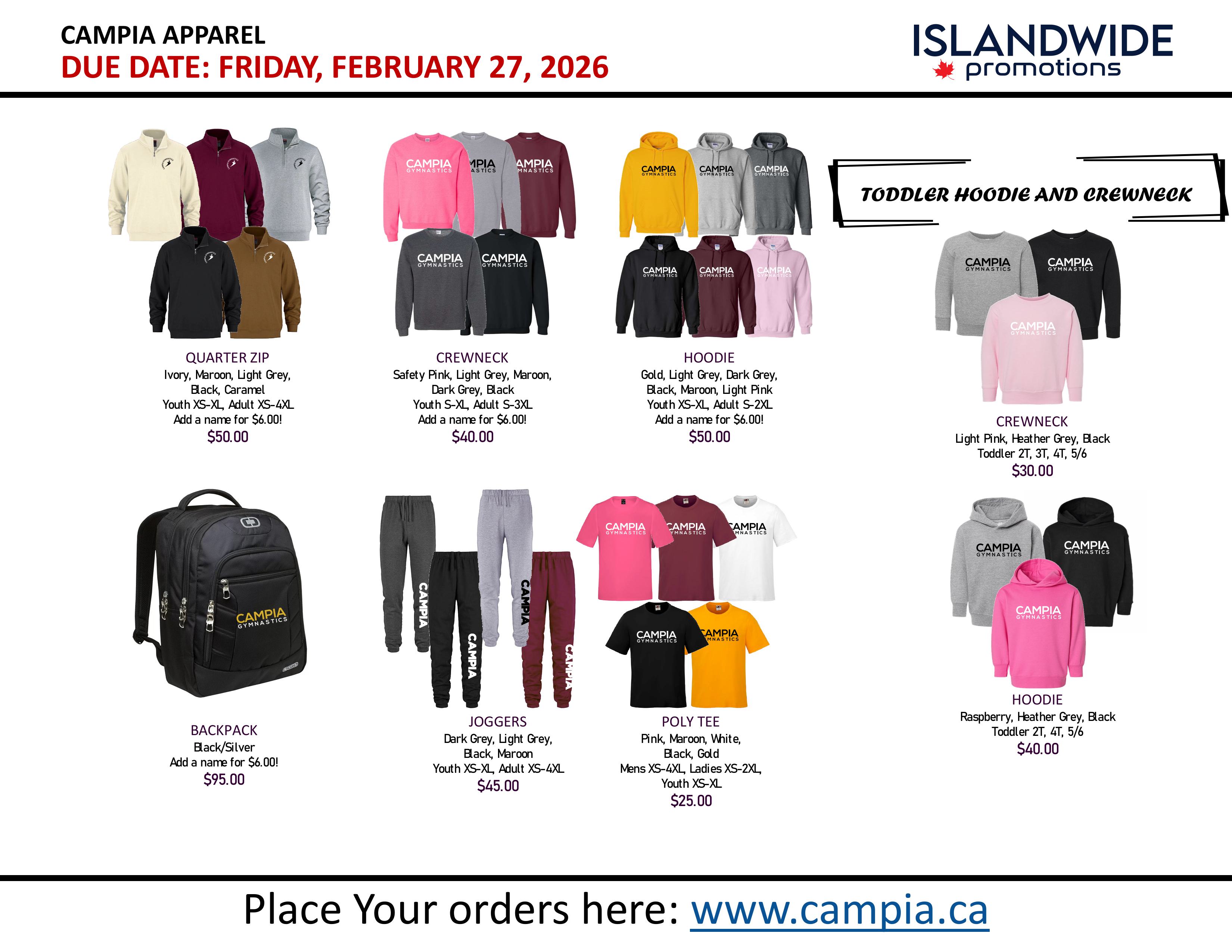 Campia's Membership Fee ($30/family) is valid September 1, 2025 - August 31, 2026